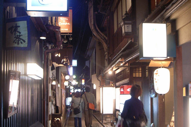 八坂神社の門前町として、四条通の南北に発展。京都有数の花街(舞妓や芸姑がいることでも有名)であり、歌舞伎劇場の南座や、祇園甲部歌舞練場、建仁寺などがある。